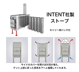 | ストーブ | ハイパワーな対流式ストーブであるINTENT STOVEを採用しています。 初心者でも火を管理しやすい設計になっています。 |